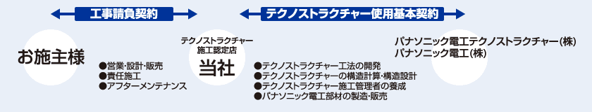 パナソニック電工の所定の審査と施工研修をパスした、ハウスビルダーだけが、テクノストラクチャーの施工認定店として認められ、テクノストラクチャーの住まいを建設・販売しています。
