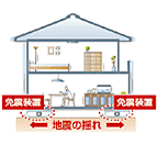 構造が強化された建物そのものの揺れをさらに抑え、地震時の家具などの転倒による被害を最小限にするシステムです。