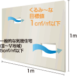冷暖房効率を高め、住まいの省エネを実現する上で、気密性能を高めること(スキマを少なくすること)は重要となります。C値(隙間相当面積)とは、住まい全体のスキマの割合を表した数値で、この数値が小さいほど、気密性能が高いことを表します。