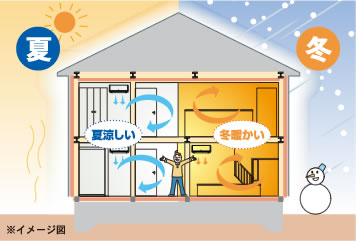 厳寒・猛暑、きびしい気候のなかで快適な住空間を実現するためには、住まいの断熱性や気密性を高めることが重要となります。
