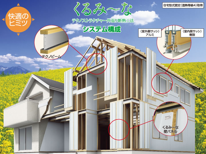 ※外張り断熱工法「くるみ~な」は全てのテクノストラクチャー工法の家に標準装備されているものではありません。ご採用には、別途費用をご負担頂きます。