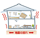 構造が強化された建物そのものの揺れをさらに抑え、地震時の家具などの転倒による被害を最小限にするシステムです。