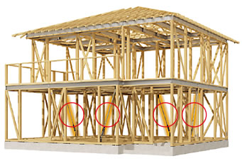 地震の揺れで変形しやすかった2階部分の揺れを抑え、家具の転倒などの不安をさらにやわらげます。